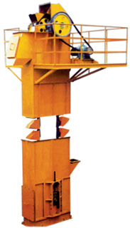 輸送鏈為套筒滾子鏈,誘導式重力卸料,用於各種粉狀,塊狀顆粒的垂直提升。物料直接流入料鬥,無須料鬥接料,減少機械磨損,取料完全均勻,避免底部物料的堆積,在輸送尺寸較大,較高磨琢性物料有優勢。
